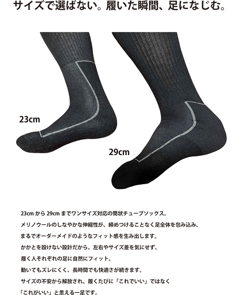 MADE IN JAPAN 踵のない、男女兼用の筒状スノーボードソックス。