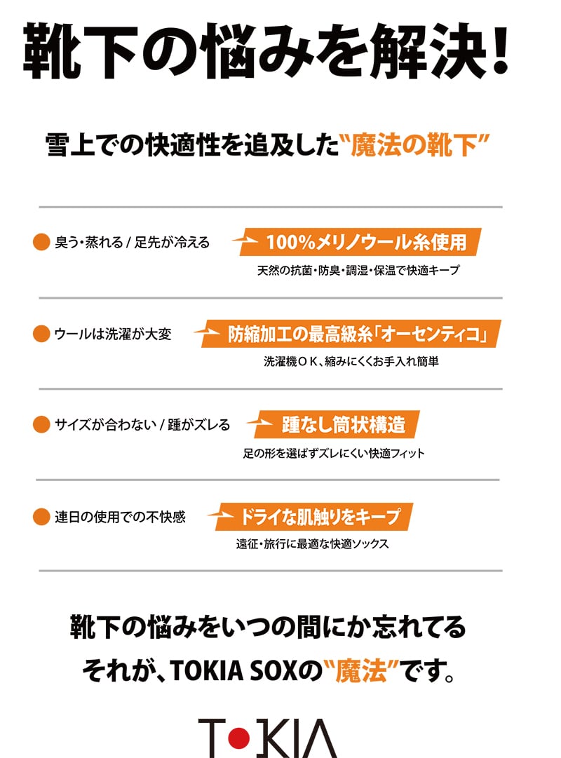 TOKIA メリノウール スノーボード専用フットソックス( 23㎝~29㎝ )